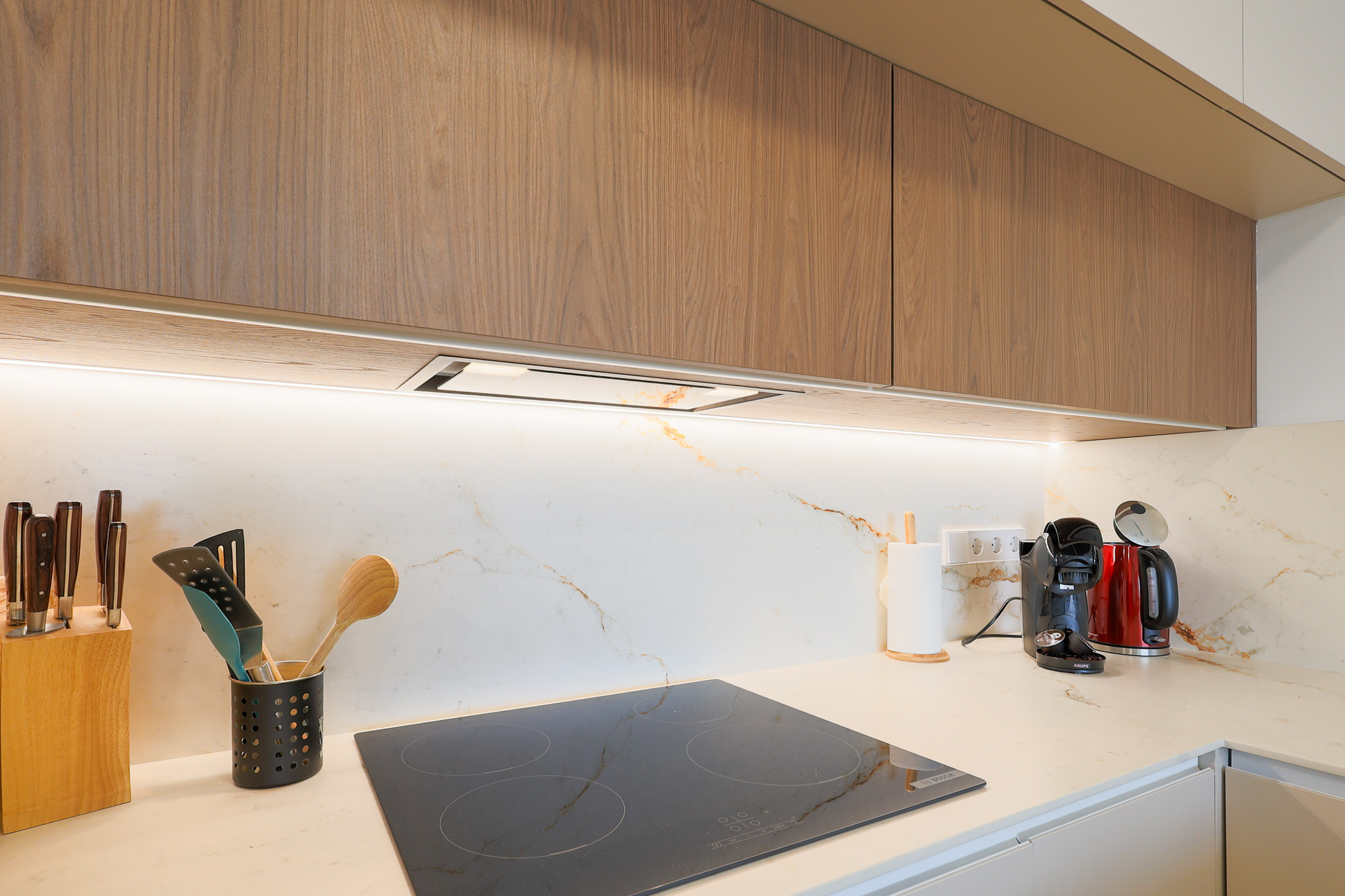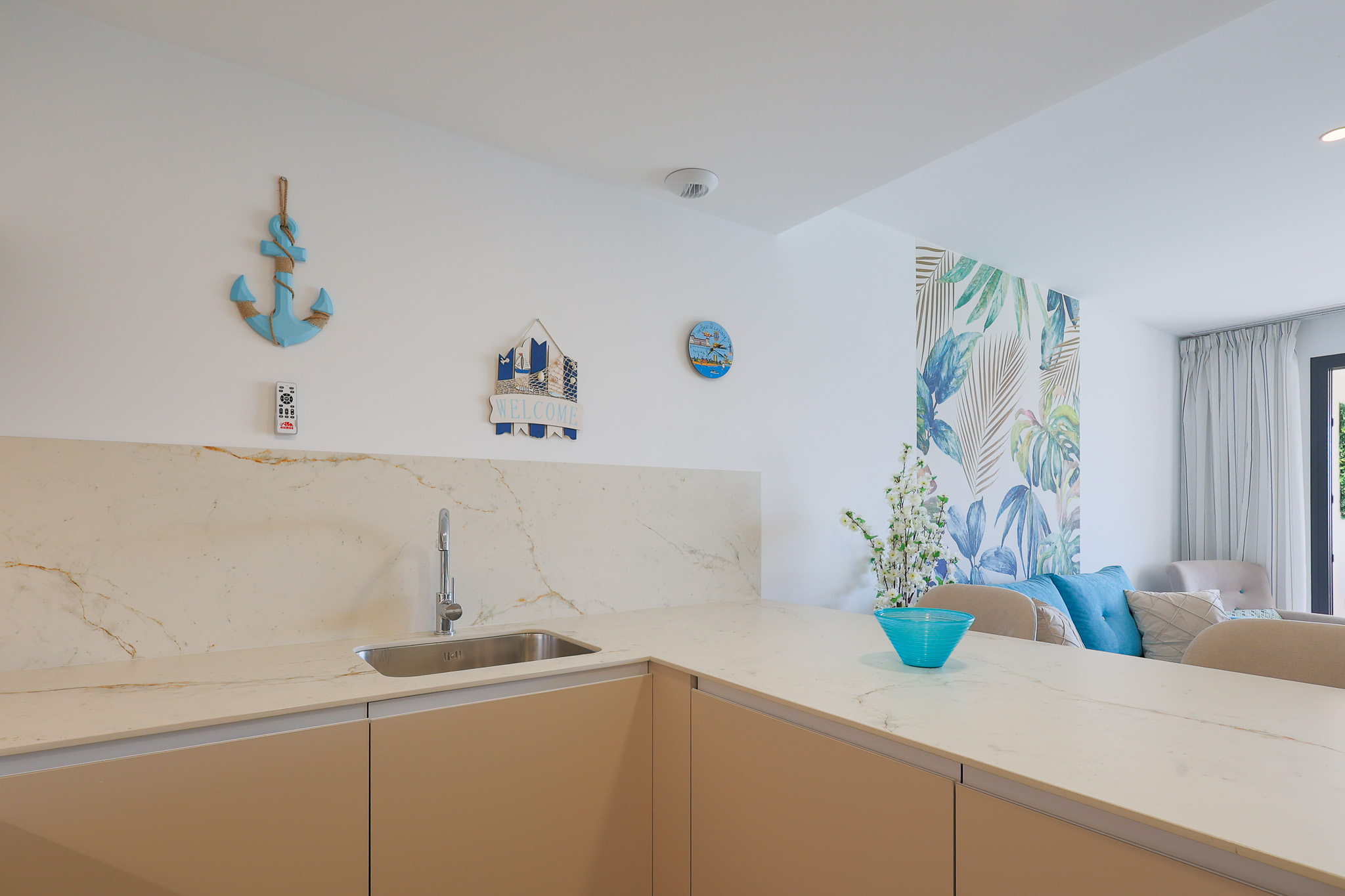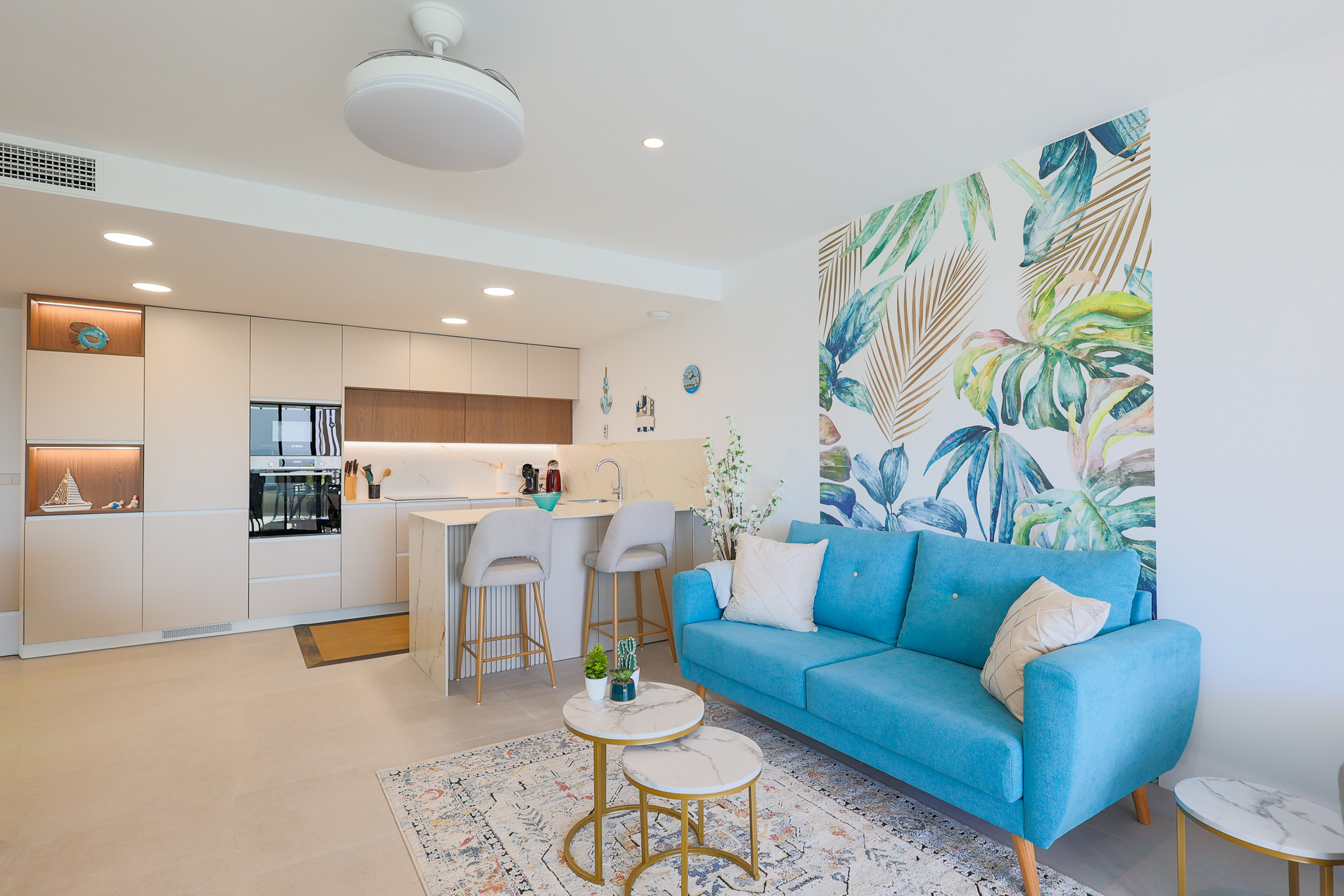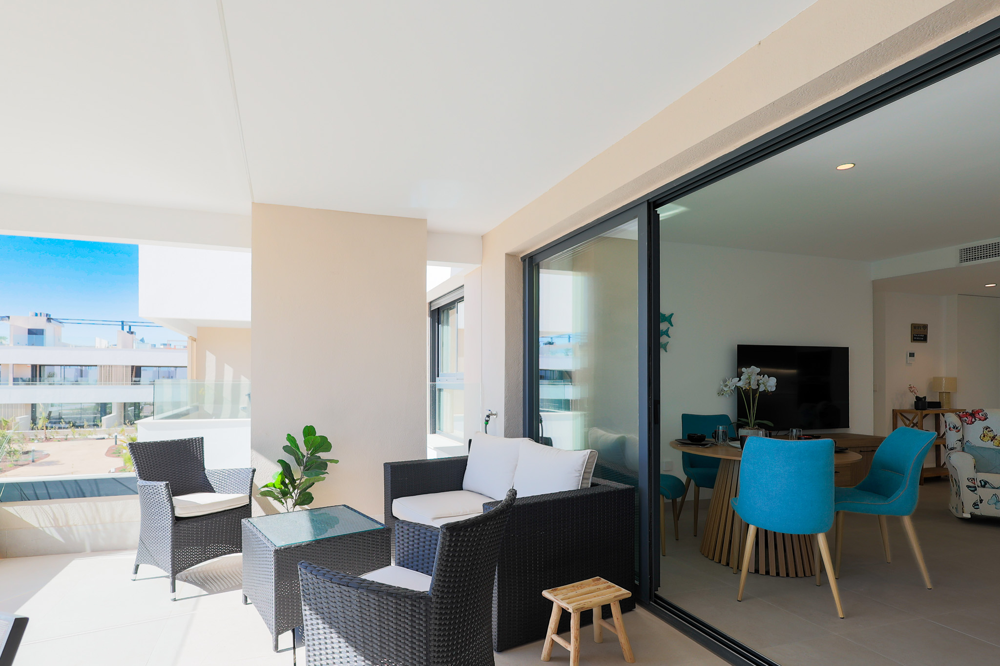 Het ruime Santa Rosalia Appartement van 105 m² combineert luxe, comfort en een toplocatie binnen Santa Rosalia Lake & Life resort, op slechts 200 meter van de schitterende blauw glinsterende lagune. De open keuken is modern, stijlvol en volledig uitgerust met inbouwapparatuur zoals magnetron, oven, vaatwasser en een 185 liter koel-vriescombinatie, ideaal om culinaire wensen te vervullen. De woonkamer is licht en elegant ingericht met een luxe bank, fauteuils, een ronde eettafel en barkrukken aan het kookeiland. Vanuit de woonkamer loop je zo het ruime terras op met eettafel en loungehoek, waar je geniet van het zwembad, de Spaanse zon en het prachtige uitzicht. Het is de perfecte plek voor onvergetelijke momenten aan de Costa Cálida.